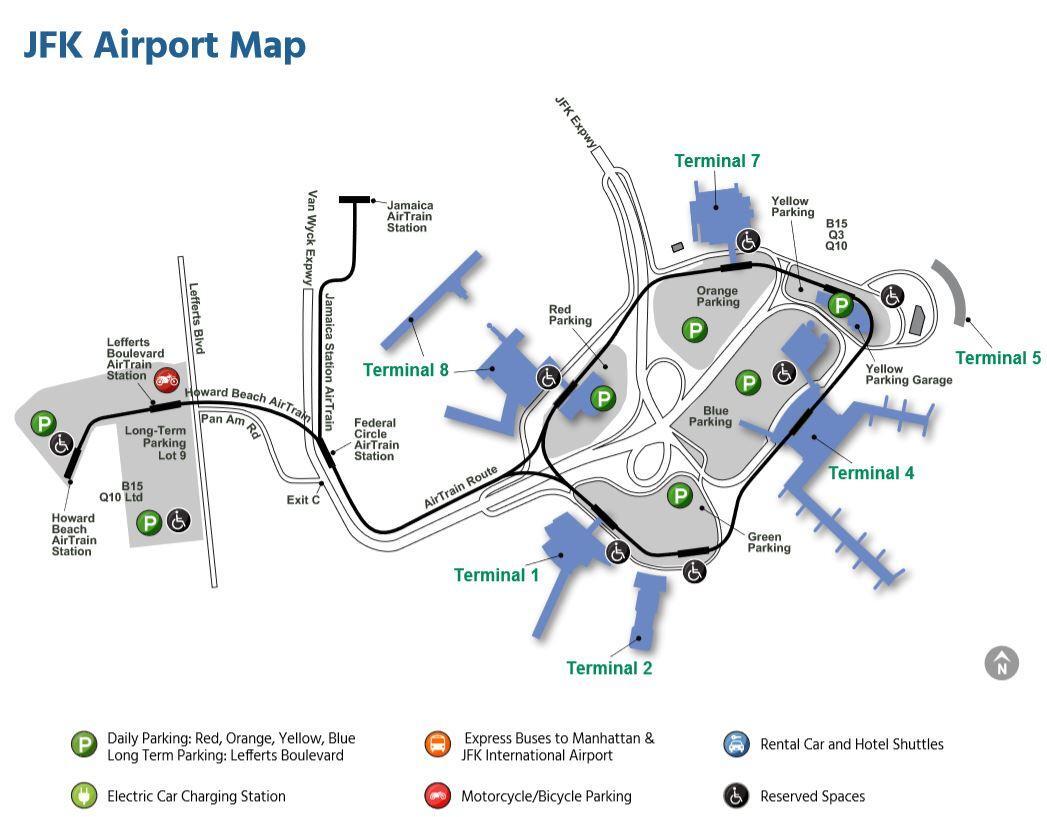 *Note: JFK Airport terminal six is no longer in use, though it sometimes appears on older maps of the airport.