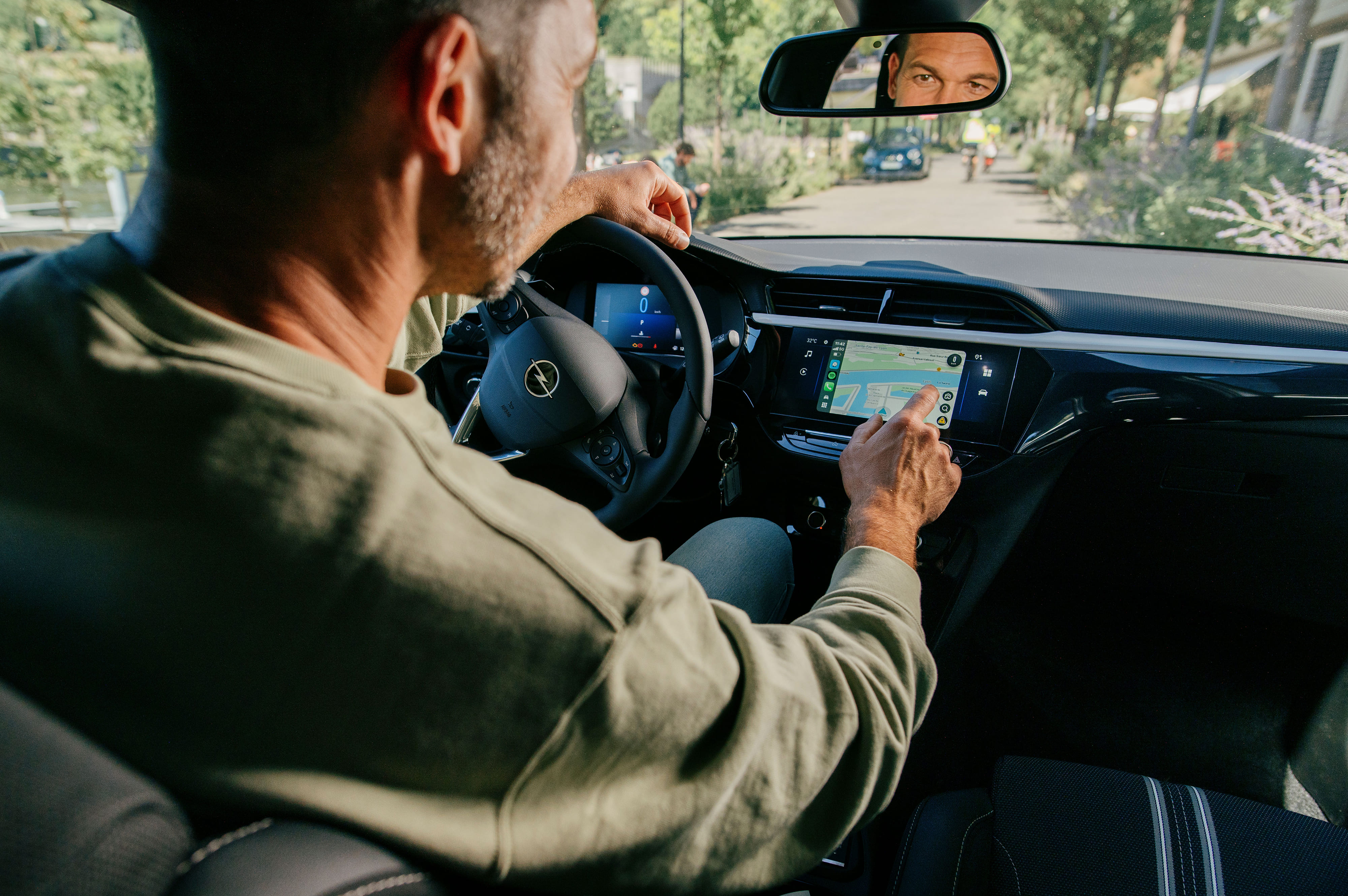 A man in his car using the GPS
