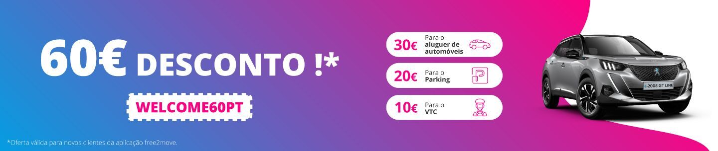🎁 Grandes descontos esperam na aplicação Free2move com o Código de vantagens WELCOME60PT*